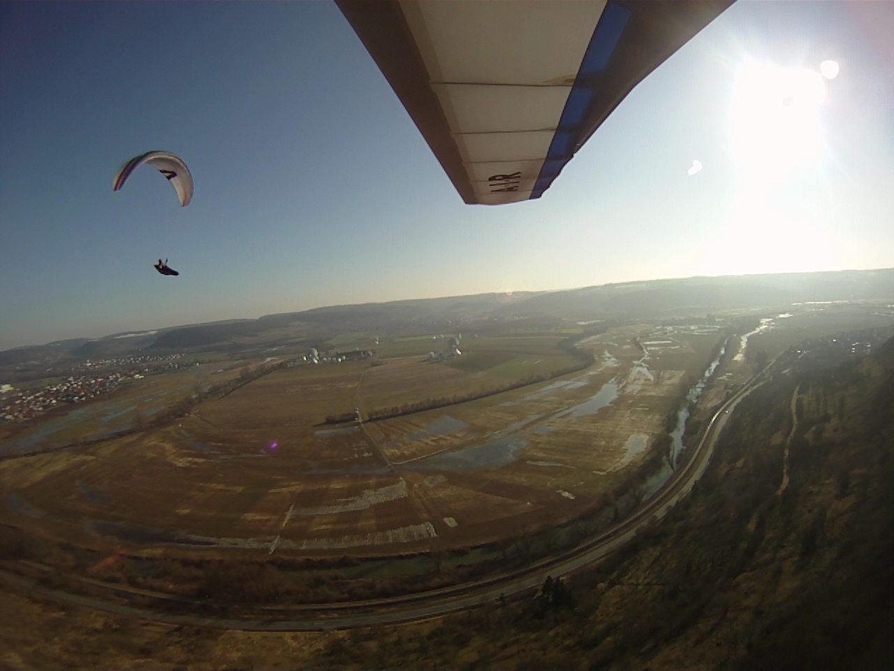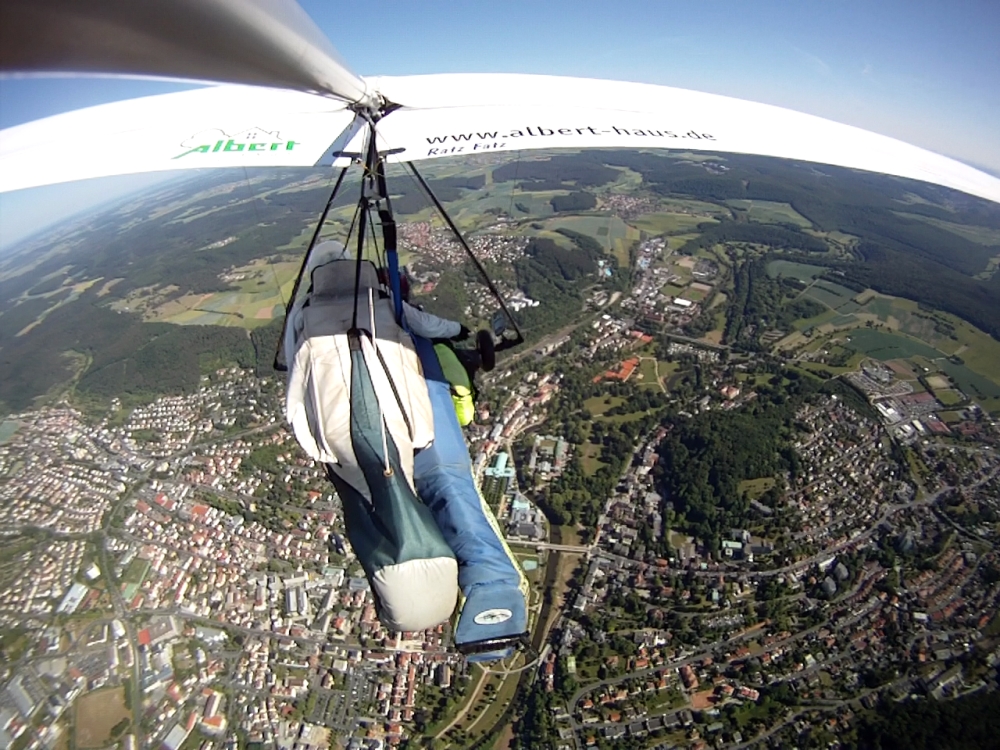 Für die super Leistung von Norbert interessieren sich nach den Fernsehberichten im BR auch die lokalen Medien. MainPost, SaaleZeitung etc. haben bereits schöne Berichte abgedruckt (stelle sie demnächst online). Dann kam am Mittwoch auch noch TV Touring nach Bad Kissingen um von Norbert ein Interview und Flugaufnahmen zu machen. Der Moderator hat dann auch noch -freilich um authentisch übers Fliegen berichten zu können- einen Tandemflug bei bestem Thermikwetter über Bad Kissingen geniessen dürfen. Andreas hat uns geschleppt, Matthias ist mit der FK9 und einem Kameramann nebenhergeflogen und am VX hatten wir zwei GoPro montiert. Norbert war mit dem VR bereits vorher gestartet und hatte in der Thermik auf uns gewartet um später mit uns etwas Formation zu fliegen, damit es tolle Filmaufnahmen gibt.