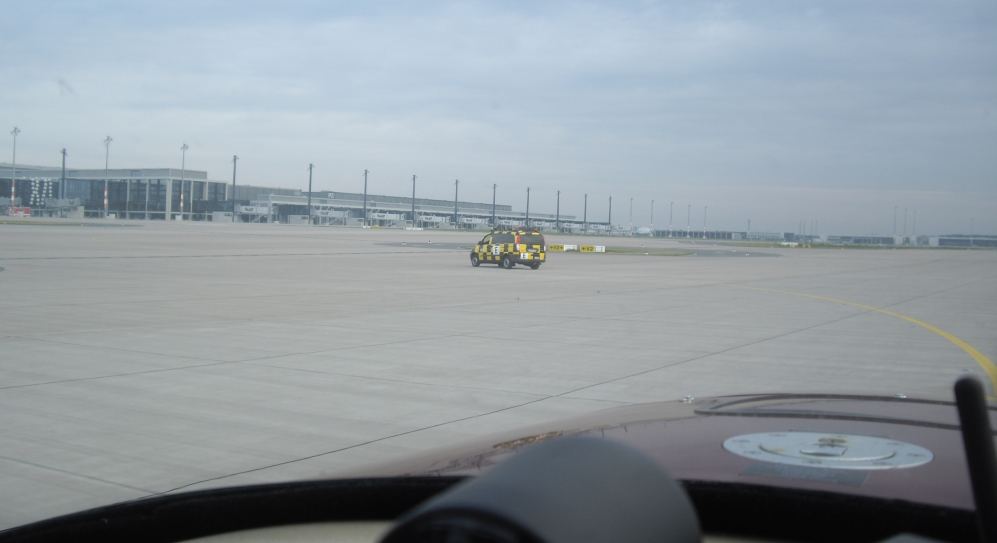 Nach einer ausführlichen BER-Führung ging fast pünktlich (lag aber an der DFS) mit dem Ausflugsslot wieder weiter. Während der ganzen Zeit ging natürlich der normale Flugbetrieb am Flughafen Schönefeld nebenan weiter. Aufpassen mussten wir schon, dass alles paßt.