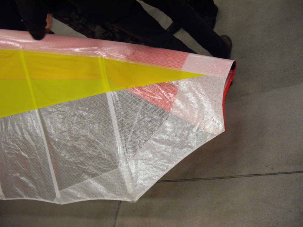 Das Segel wird wie beim Combat über eine Spreizlatte gespannt. Der Vorteil der Spreizlatte ist das geringe Gewicht und die Schonung des Segels.